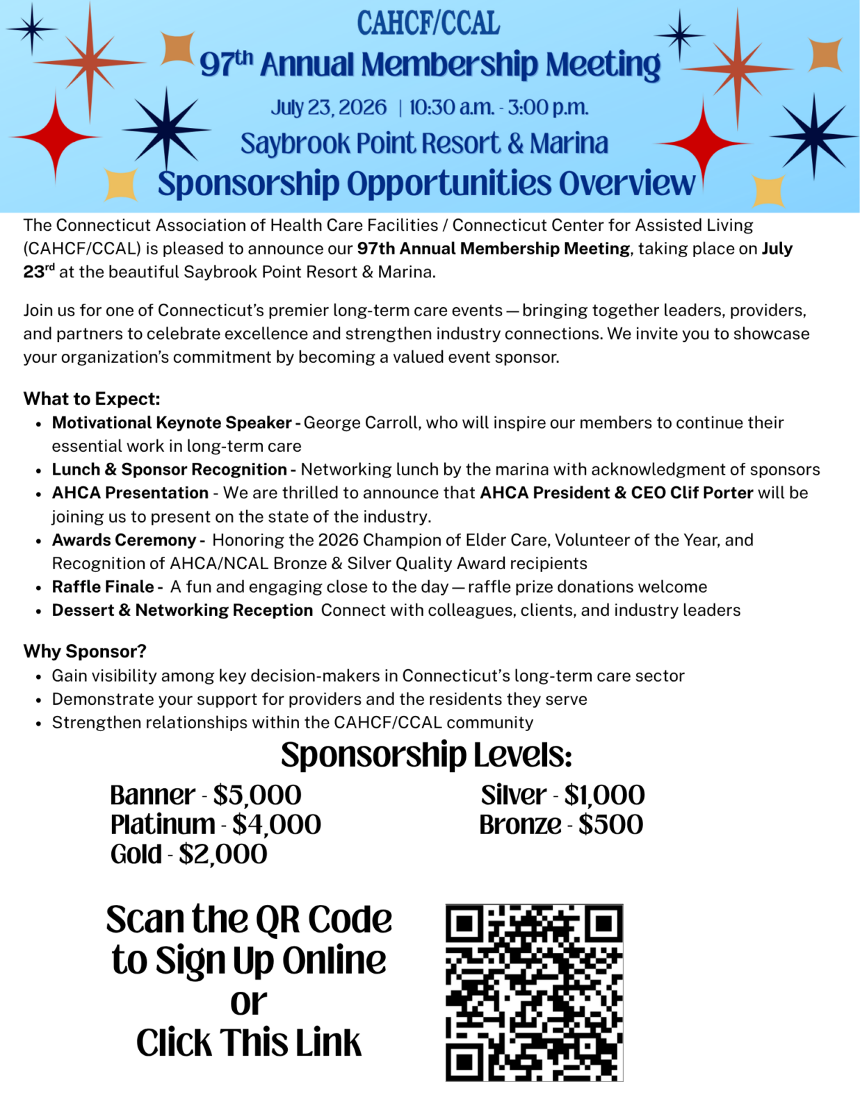 - Adriana Manning, Connecticut Association of Health Care Facilities / Connecticut Center for Assisted Living